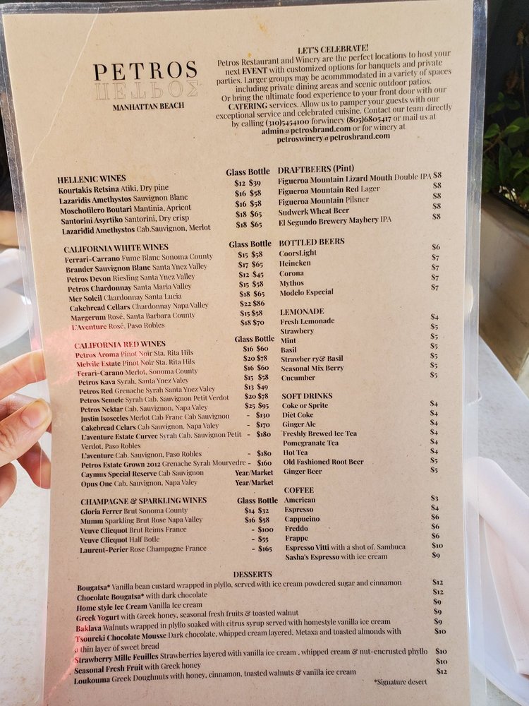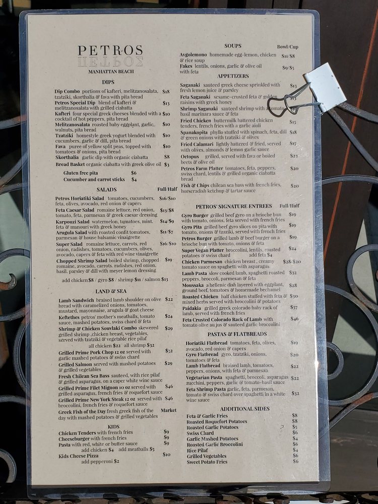 Introducing Petros Manhattan Beach, a Mediterranean restaurant offering a wide range of traditional Greek dishes with a modern twist. Located in Manhattan Beach, CA, Petros provides a cozy ambiance with outdoor seating and excellent service. The menu includes vegan and vegetarian options, as well as delicious cuts of meat, fresh salads, and irresistible desserts. Customers rave about the attentive and friendly staff, with mentions of standout dishes like the refreshing summer salad topped with Petros' fresh feta cheese. The restaurant also caters to large parties, making it a great choice for gatherings. Don't miss the grilled salmon or gyro pita, both dishes receiving high praise for their flavors and quality. Petros Manhattan Beach is a must-visit for anyone looking for a memorable dining experience in the heart of downtown Manhattan Beach.